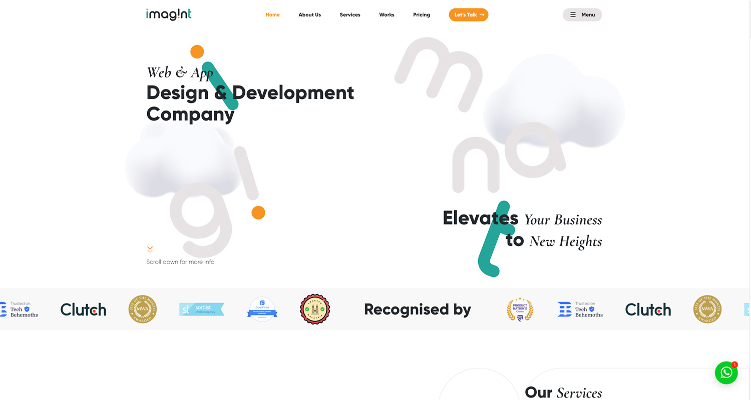 Imagint takes a highly creative approach with immersive visuals and a strong artistic direction. Their site blends motion graphics and a distinct design style to leave a lasting impression.